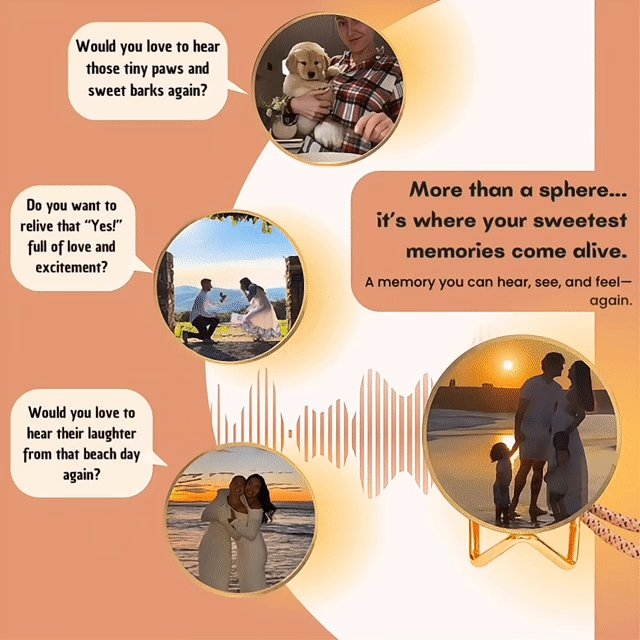 Memory Cyrstal Ball™ it's a 3D crystal sphere with a built-in screen that plays your personalized video, so you can relive your most beautiful memories in a truly magical way. ✨